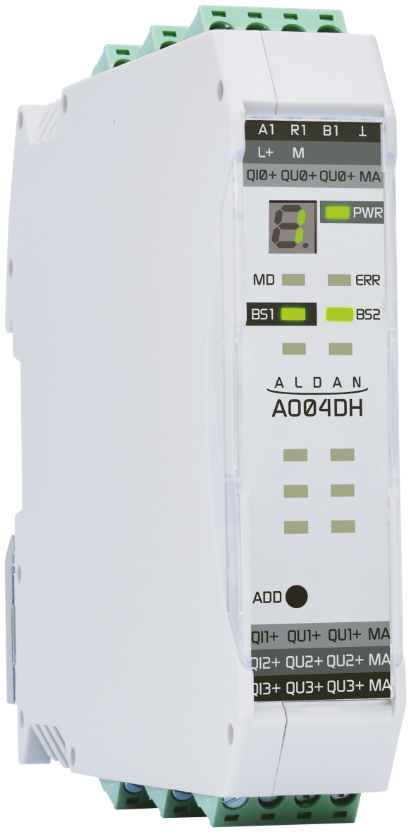 Модуль аналогового вывода ALDAN A1-M-AO04DH – это промышленный модуль аналогового выхода, предназначенный для формирования и передачи непрерывных сигналов тока и напряжения. Устройство используется в системах автоматизации, обеспечивает высокую точность генерации аналоговых сигналов и удобную интеграцию в распределённые системы управления.